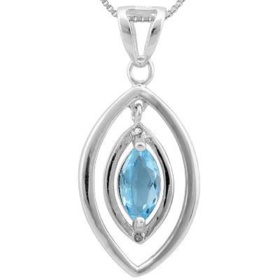GENUINE 0.97 CTW BLUE TOPAZ AND DIAMOND PLATINUM PLATED **|**|** GENUINE 0.97 CTW BLUE TOPAZ AND DIAMOND PLATINUM PLATED .925 STERLING SILVER PENDANT