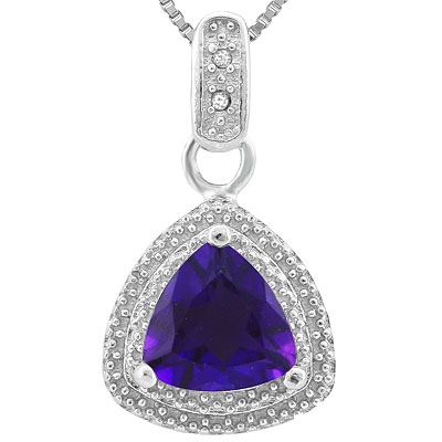 GENUINE 1.01 CTW AMETHYST AND DIAMOND PLATINUM PLATED . **|**|** GENUINE 1.01 CTW AMETHYST AND DIAMOND PLATINUM PLATED .925 STERLING SILVER PENDANT