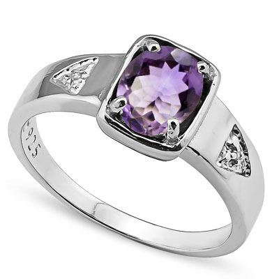 GENUINE 1.12 CTW AMETHYST AND 0.012 DIAMOND PLATINUM PL **|**|** GENUINE 1.12 CTW AMETHYST AND 0.012 DIAMOND PLATINUM PLATED .925 STERLING SILVER RING