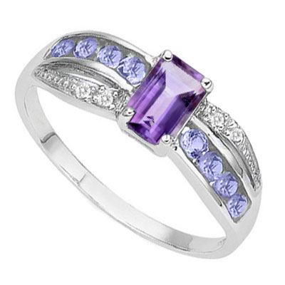 GENUINE 1.18 CTW AMETHYST AND TANZANITE PLATINUM PLATED **|**|** GENUINE 1.18 CTW AMETHYST AND TANZANITE PLATINUM PLATED .925 STERLING SILVER RING