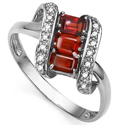 GENUINE 1.18 CTW GARNET AND 0.01 CTW DIAMOND PLATINUM P **|**|** GENUINE 1.18 CTW GARNET AND 0.01 CTW DIAMOND PLATINUM PLATED .925 STERLING SILVER RING