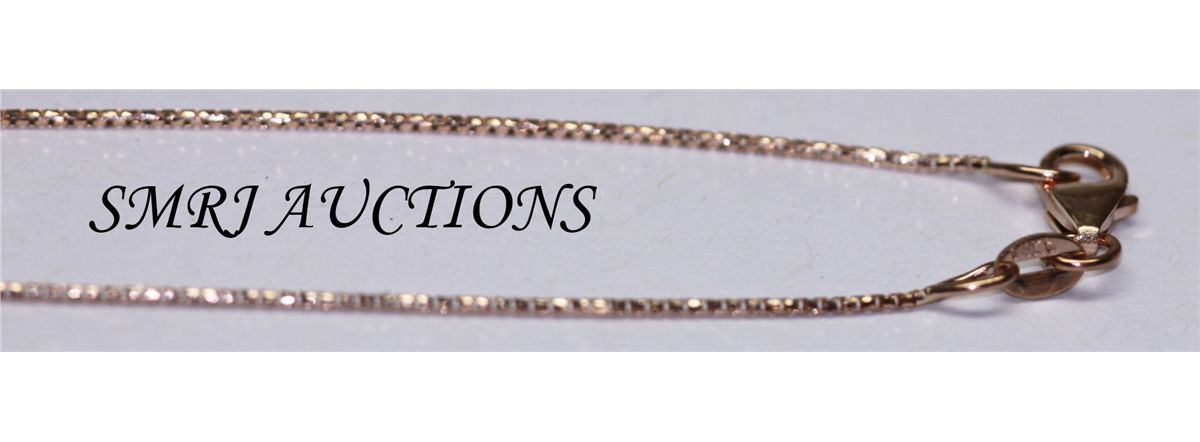 GENUINE 14K ITALIAN ROSE GOLD 1.70G BOX CHAINS **|**|** GENUINE 14K ITALIAN ROSE GOLD 1.70G BOX CHAINS METAL ROSE GOLD PURITY 14K ITALIAN TOTAL WEIGHT 1.7GRAMS 0.6MM LENGTH: 16in. 18in. AND 20in. ; MSRP: $130