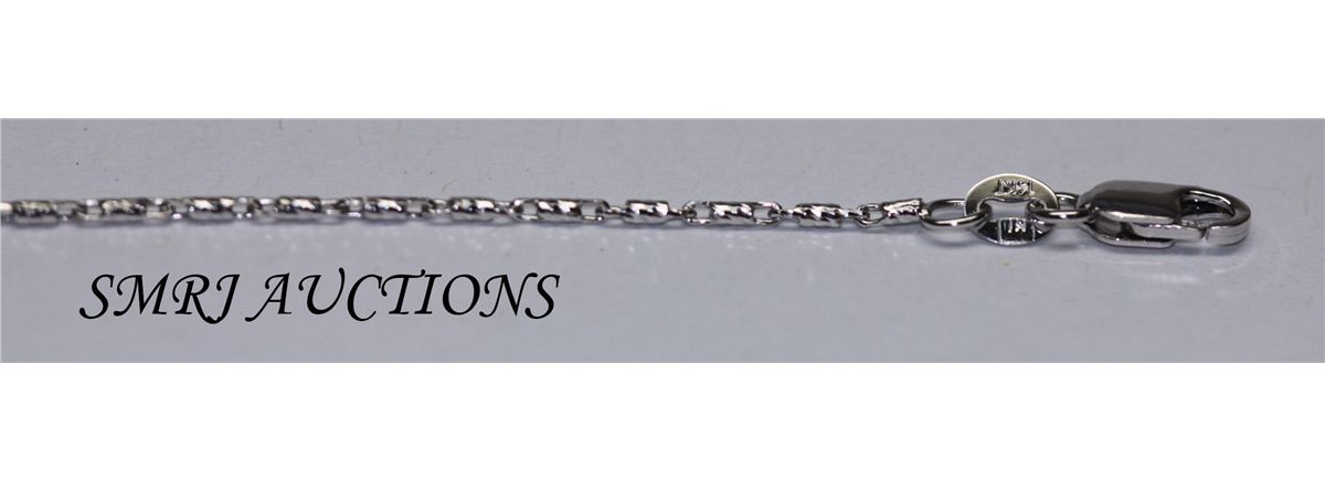 GENUINE 14K ITALIAN WHITE GOLD 3.68G D/C BAR CHAIN **|**|** GENUINE 14K ITALIAN WHITE GOLD 3.68G D/C BAR CHAIN WHITE METAL PURITY 14K ITALIAN TOTAL WEIGHT 3.68GRAMS 1.0MM LENGTH: 16in. 18in. 20in. 22in. 24in. ; MSRP: $220