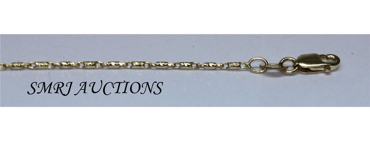 GENUINE 14K ITALIAN YELLOW GOLD 4.43G D/C BAR CHAIN **|**|** GENUINE 14K ITALIAN YELLOW GOLD 4.43G D/C BAR CHAIN YELLOW METAL PURITY 14K ITALIAN TOTAL WEIGHT 4.43GRAMS 1.0MM LENGTH: 16in. 18in. 20in. 22in. 24in. ; MSRP: $250