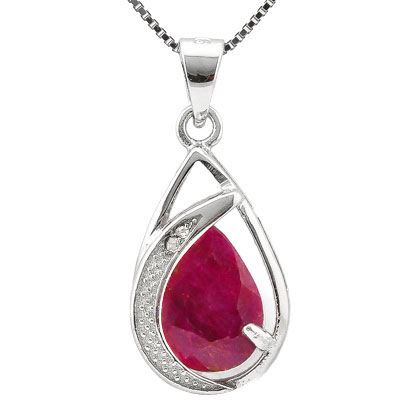 GENUINE 2.20 CTW RUBY AND 0.01 CTW DIAMOND PLATINUM PLA **|**|** GENUINE 2.20 CTW RUBY AND 0.01 CTW DIAMOND PLATINUM PLATED .925 STERLING SILVER PENDANT