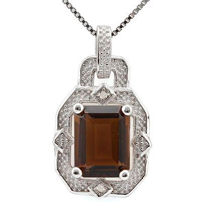 GENUINE 2.20 CTW SMOKEY TOPAZ AND 0.01 CTW DIAMOND PLAT **|**|** GENUINE 2.20 CTW SMOKEY TOPAZ AND 0.01 CTW DIAMOND PLATINUM PLATED .925 STERLING SILVER PENDANT