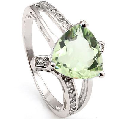 GENUINE 2.30 CTW GREEN AMETHYST AND CZ PLATINUM PLATED **|**|** GENUINE 2.30 CTW GREEN AMETHYST AND CZ PLATINUM PLATED .925 STERLING SILVER RING