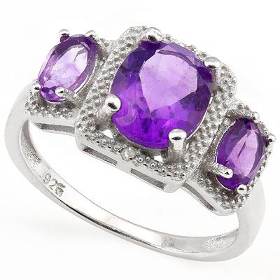 GENUINE 2.61 CTW AMETHYST PLATINUM PLATED .925 STERLING **|**|** GENUINE 2.61 CTW AMETHYST PLATINUM PLATED .925 STERLING SILVER RING