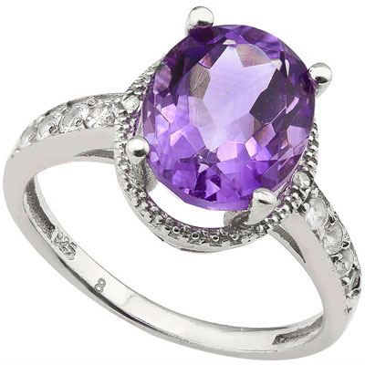 GENUINE 3.10 CTW AMETHYST AND .32 CTW WHITE TOPAZ PLATI **|**|** GENUINE 3.10 CTW AMETHYST AND .32 CTW WHITE TOPAZ PLATINUM PLATED .925 STERLING SILVER RING