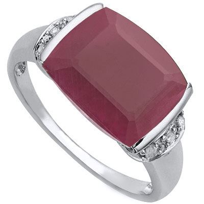 GENUINE 5.85 CTW RUBY AND 0.03 CTW DIAMOND PLATINUM PLA **|**|** GENUINE 5.85 CTW RUBY AND 0.03 CTW DIAMOND PLATINUM PLATED .925 STERLING SILVER RING
