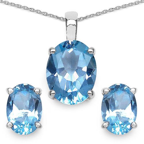 GENUINE 7.50 CTW BLUE TOPAZ PENDANT AND EARRING SET .92 **|**|** GENUINE 7.50 CTW BLUE TOPAZ PENDANT AND EARRING SET .925 STERLING SILVER RHODIUM PLATED