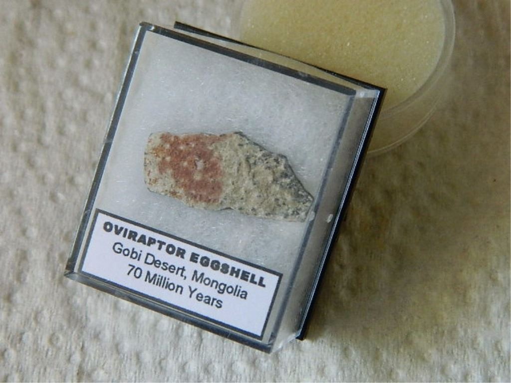 GENUINE 70 MILLION YEAR OLF DINOSAUR EGGSHELL - IN DISPLAY CASE