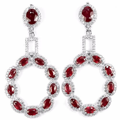GENUINE AAA BLOOD RED RUBY WHITE CZ 925 SILVER EARRING 14K WHITE GOLD COATING; STONE SHAPE OVAL STONE DIMENSION 7 X 5 MM. , 5 X 3 MM. ITEM WEIGHT 12.69 GRAM COLOR -BLOOD RED; LUSTER ELEGANT; TREATMENT -HEATED; ORIGIN OF STONE- AFRICA; HARDNESS 9; ; FACE OF EARRING 50 X 25 MM. WHITE CUBIC ZIRCONIA 1 MM.;