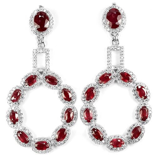 GENUINE AAA BLOOD RED RUBY WHITE CZ 925 SILVER EARRING 14K WHITE GOLD COATING; STONE SHAPE OVAL STONE DIMENSION 7 X 5 MM. , 5 X 3 MM. ITEM WEIGHT 12.69 GRAM COLOR -BLOOD RED; LUSTER ELEGANT; TREATMENT -HEATED; ORIGIN OF STONE- AFRICA; HARDNESS 9; ; FACE OF EARRING 50 X 25 MM. WHITE CUBIC ZIRCONIA 1 MM.;
