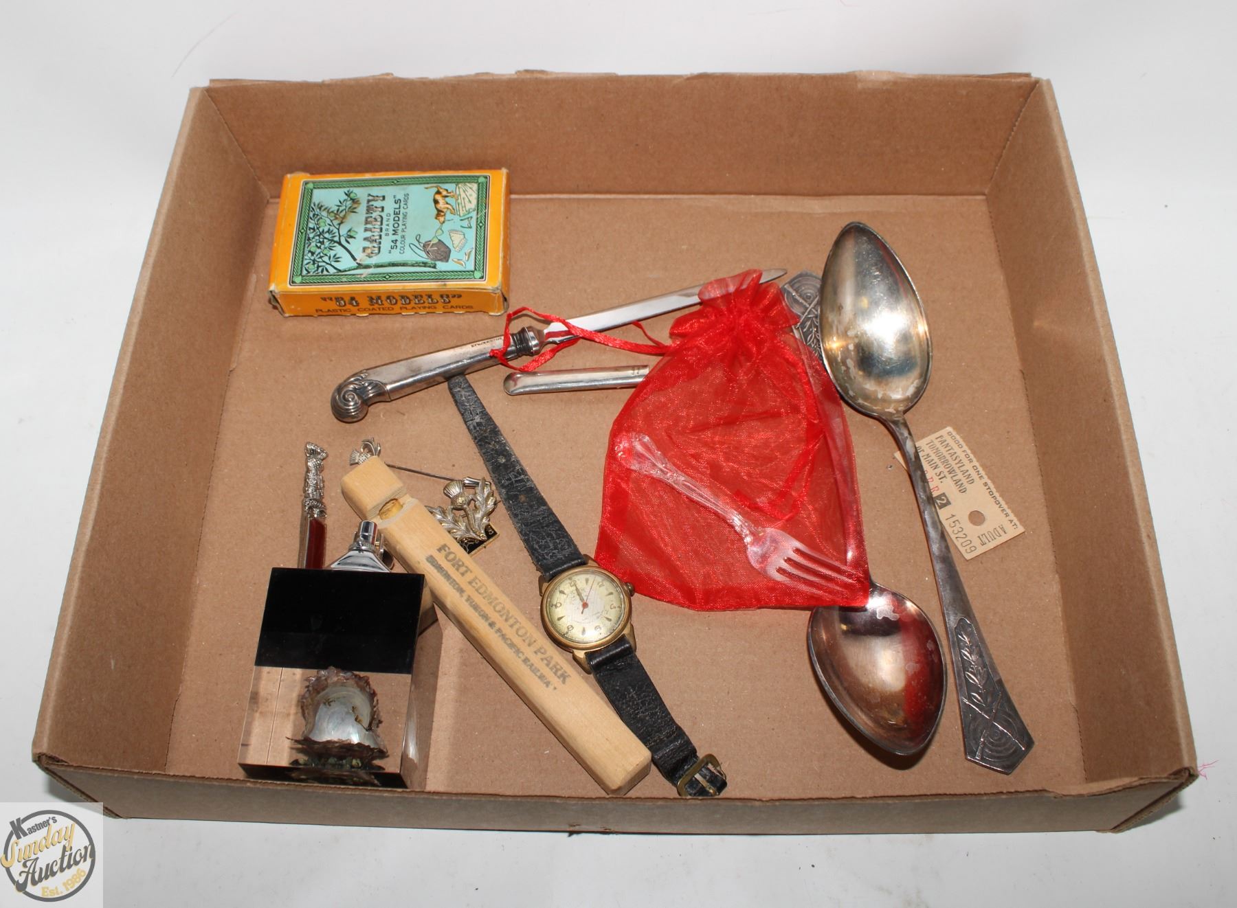 GENUINE BIRKS LETTER OPENER + STERLING SILVER MATCH HOLDER + ANTIQUE TOSCA 21 JEWELS WRIST WATCH + TWO 90 SILVER SERVING SPOONS (SILVER HAS BEEN METAL TESTED)**ALL ITEMS MUST BE REMOVED BY 5PM SATURDAY, JULY 19TH 2025. ALL REMAINING ITEMS WILL BE SUBJECT TO A $6.00 PER DAY STORAGE CHARGE. ANY ITEMS REMAINING AFTER MONDAY, AUGUST 4TH, 2025 WILL BE CONSIDERED FORFEITED. NO REFUNDS WILL BE ISSUED FOR FORFEITED ITEMS. TO SCHEDULE A PICK UP APPOINTMENT CLICK HERE