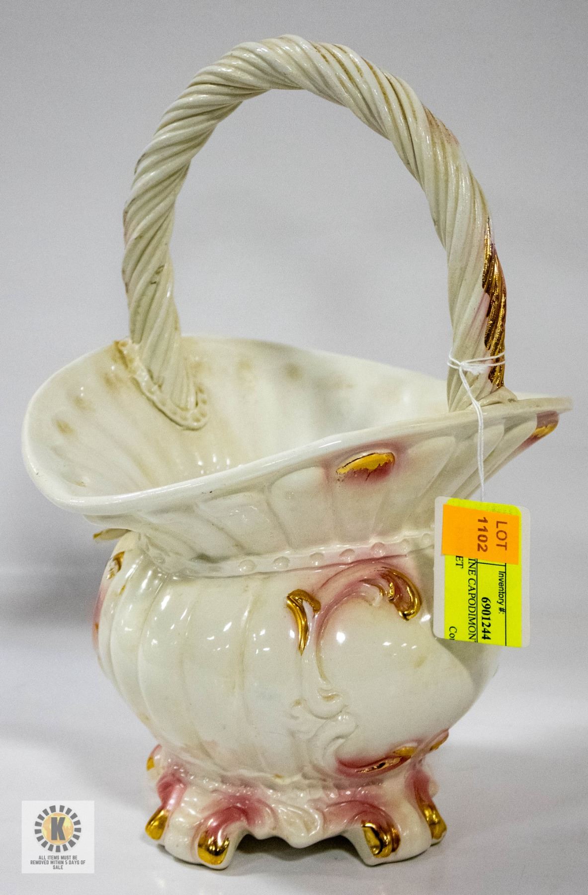 GENUINE CAPODIMONTE FLOWER BASKET H-11" DIAM-8"