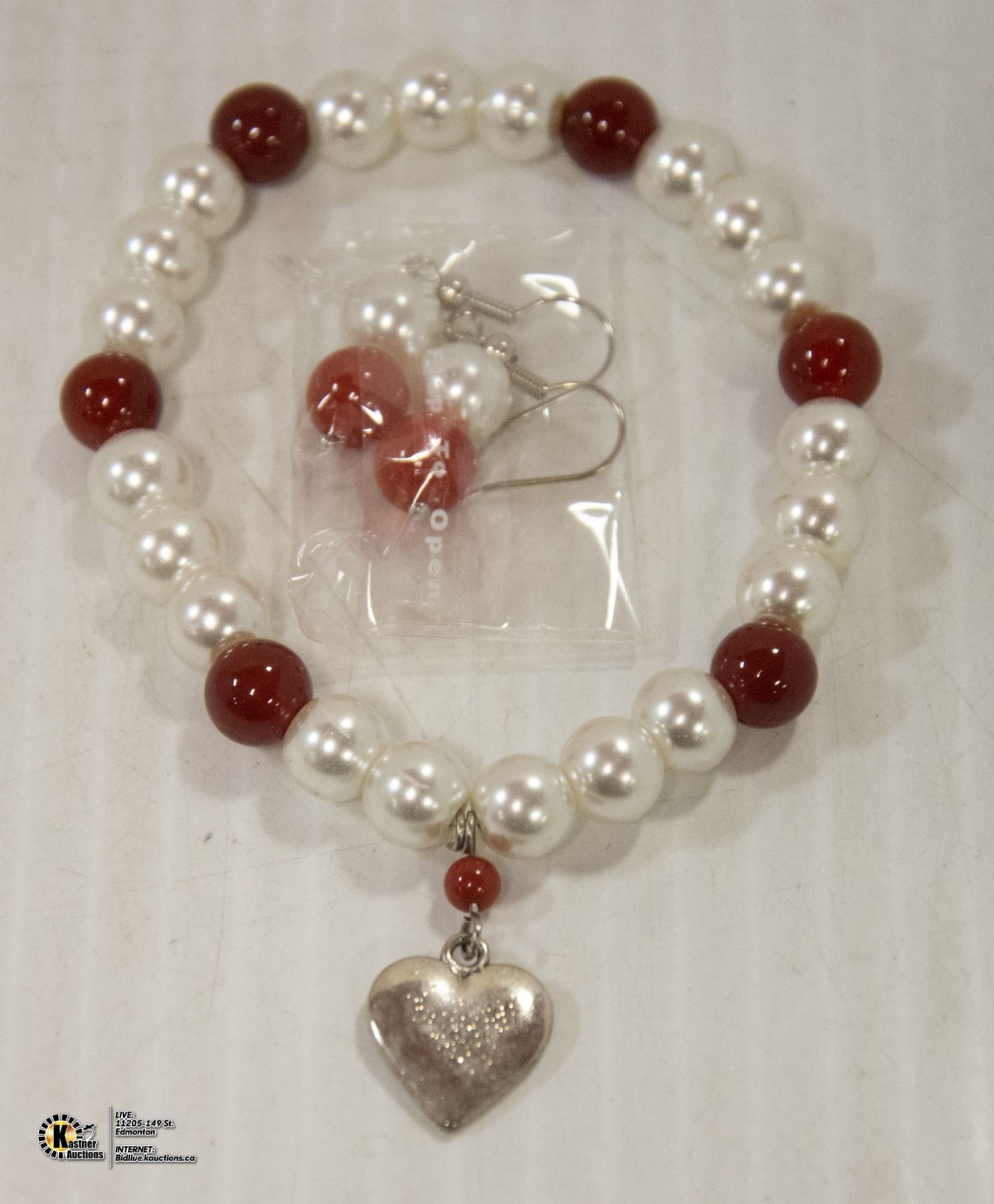 GENUINE CARNELIAN HEART CHARM BRACELET & EARRINGS