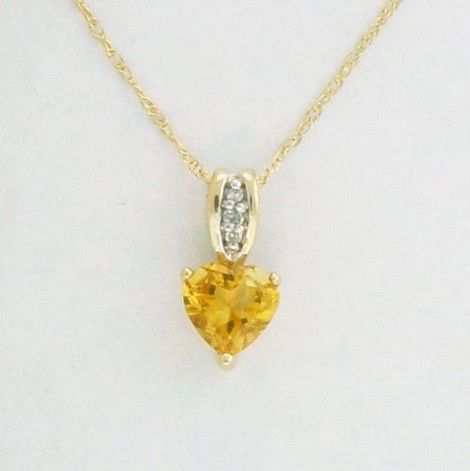 GENUINE CITRINE HEART PENDANT 10KY 15X8MM