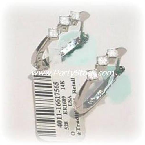 Gorgeous Genuine Diamond Small Hoop, or "Huggie" Earrings set in 14 Karat White Gold are exquisite and create lots of sparkle! Each earring boasts three genuine Diamonds which are round cut for brilliance. <p> CTW (Carats Total Weight) = .5 Color= H-I Clarity = I1-I2 <p> We bought a "lot" of Close Out Items from a Premier Retail Chain that went out of business in California recently. We're able to pass our HUGE savings on to YOU! Please note, our quantities are very limited and we will not be able to offer this item again, once it is sold out. <p> <p>Arrives in our Velvet Gift box. See photos below. <p> Just view the SHIPPING CHARGES box below this description to see your actual shipping charges. <p> Please see our excellent feedback and satisfaction guarantee below. Click on photos to enlarge and view detail. Thanks for your patronage!