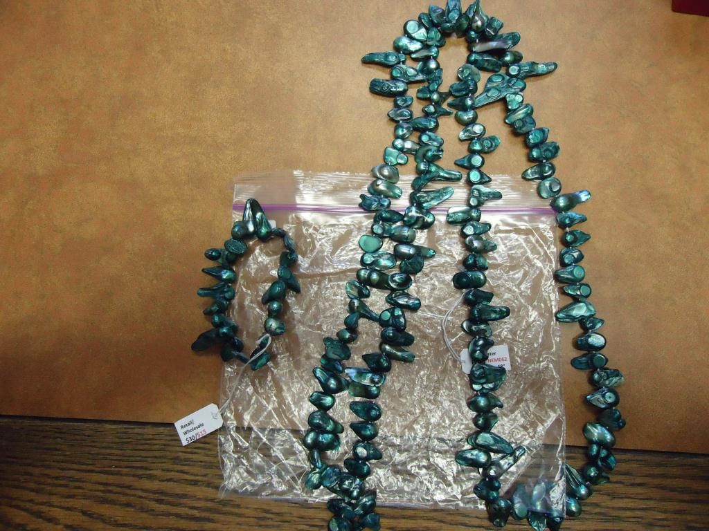 NECKACE IS 48" WITH 8-10MM IRREGULAR SHAPE PEARLS, BRACELET IS 7" WITH 8-10MM IRREGULAR SHAPE PEARLS, NICE AQUA GREEN COLOR, RETAILS FOR $150.00