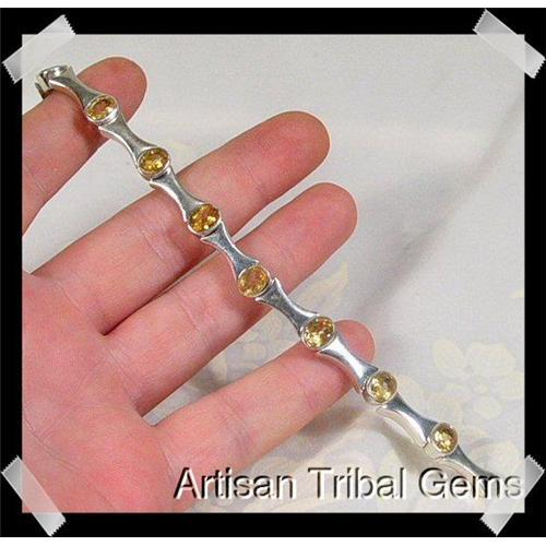 Tremendous details executed to perfection. A fabulous sterling (not hallmarked) link bracelet dressed with nine 9mm faceted citrine stones. The silver links measure 13mm. For those not familiar with metric 25mm=1". The bracelet has an overall length of 6.65" with a gram weight of 30.2.