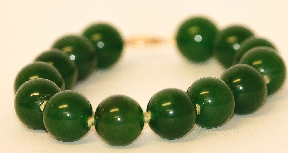 GENUINE GREEN JADE BRACELET W/14K YELLOW GOLD CLASP **|**|** GENUINE GREEN JADE BRACELET W/14K YELLOW GOLD CLASP