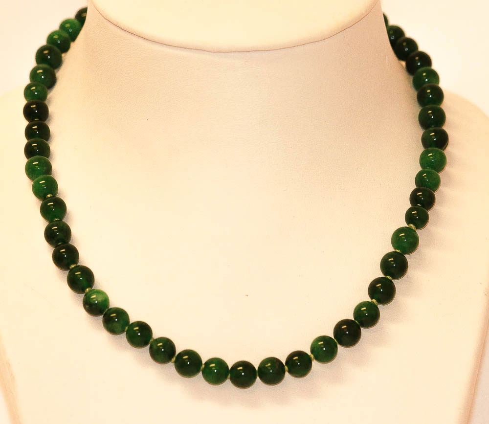 GENUINE GREEN JADE NECKLACE W/14K WHITE GOLD CLASP **|**|** GENUINE GREEN JADE NECKLACE W/14K WHITE GOLD CLASP