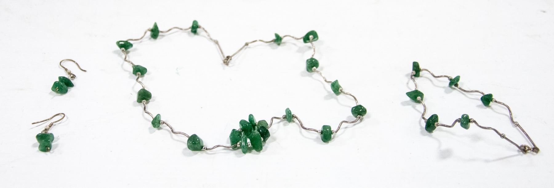 GENUINE JADE NECKLACE, EARRINGS & BRACELET SET