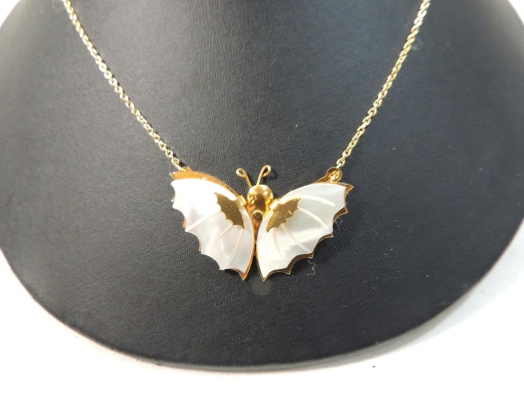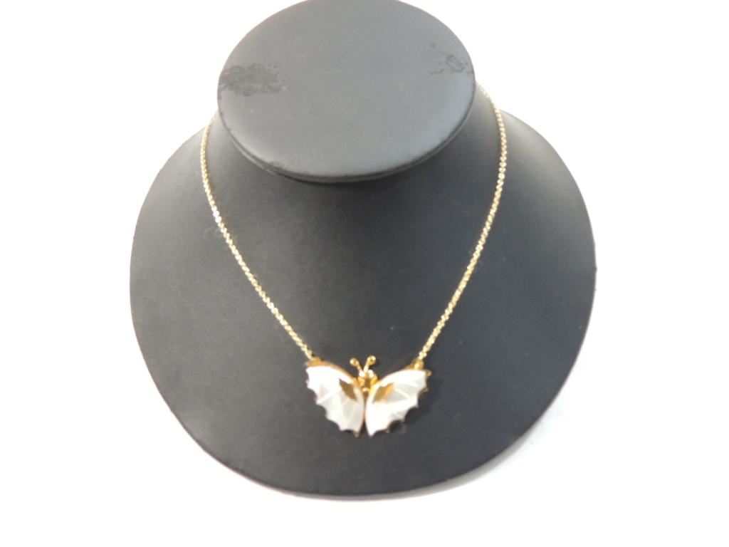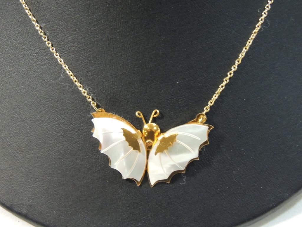 DECORATIVE NECKLACE LADIES NECKLACE MOTHER OF PEARL NECKLACE GOLDTONE BUTTERFLY NECKLACE AS SHOWN SEE PHOTO FOR MORE DETAILS