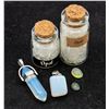 JEWELRY READY GEMSTONES, 2 MINI CORK LIDDED GLASS JARS FILLED WITH GEMSTONES AND 2 NEW POLISHED OPAL PENDANTS **ALL ITEMS MUST BE REMOVED BY 5PM SATURDAY, FEBRUARY 18TH 2023. ALL REMAINING ITEMS WILL BE SUBJECT TO A $6.00 PER DAY STORAGE CHARGE. ANY ITEMS REMAINING AFTER MONDAY, MARCH 6TH, 2023 WILL BE CONSIDERED FORFEITED. NO REFUNDS WILL BE ISSUED FOR FORFEITED ITEMS. TO SCHEDULE A PICK UP APPOINTMENT CLICK HERE