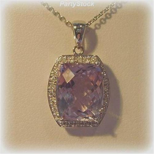 PRINCESS CUT, GENUINE PINK AMETHYST WEIGHS 5.76 CARATS! This stunning and substantial Pink Amethyst stone is surrounded by 26 genuine Diamonds to create a truly exquisite Pendant Necklace of 16 inches length.