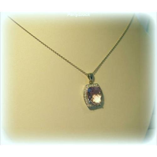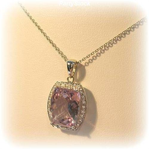 PRINCESS CUT, GENUINE PINK AMETHYST WEIGHS 5.76 CARATS! This stunning and substantial Pink Amethyst stone is surrounded by 26 genuine Diamonds to create a truly exquisite Pendant Necklace of 16 inches length.