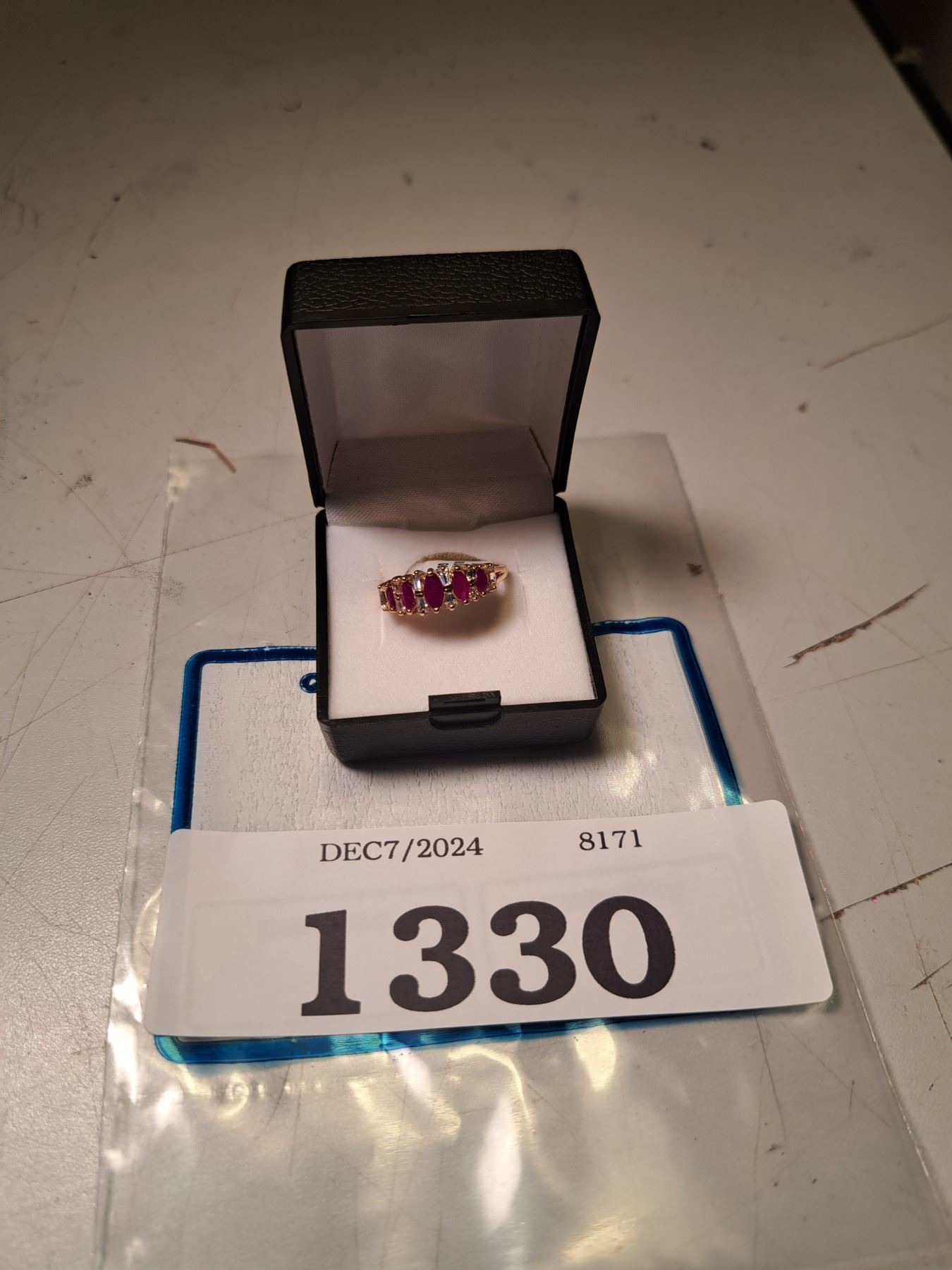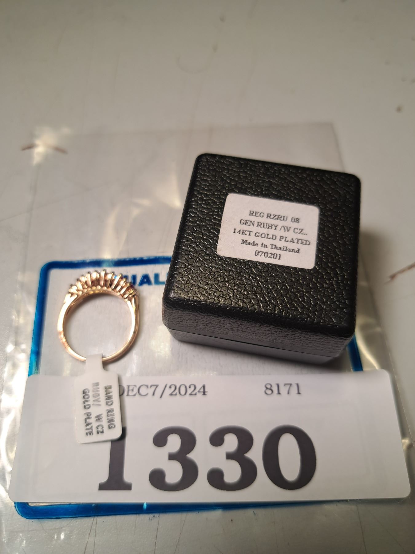 GENUINE RUBY/W CZ 14KT GOLD PLATED SIZE 8 RING