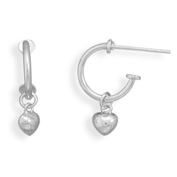 5mm heart on 13mm 3/4 hoop earrings. .925 Sterling Silver