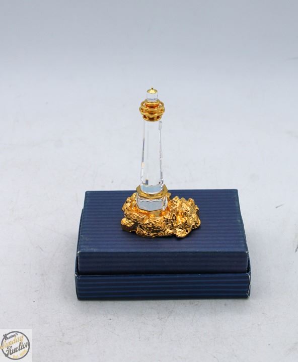 LIGHTHOUSE WITH 18KT GOLD PLATED DETAILS. RETIRED 2005 STAMPED **ALL ITEMS MUST BE REMOVED BY 5PM SATURDAY, DECEMBER 6TH 2025. ALL REMAINING ITEMS WILL BE SUBJECT TO A $6.00 PER DAY STORAGE CHARGE. ANY ITEMS REMAINING AFTER MONDAY, DECEMBER 22ND 2025 WILL BE CONSIDERED FORFEITED. NO REFUNDS WILL BE ISSUED FOR FORFEITED ITEMS. TO SCHEDULE A PICK UP APPOINTMENT CLICK HERE