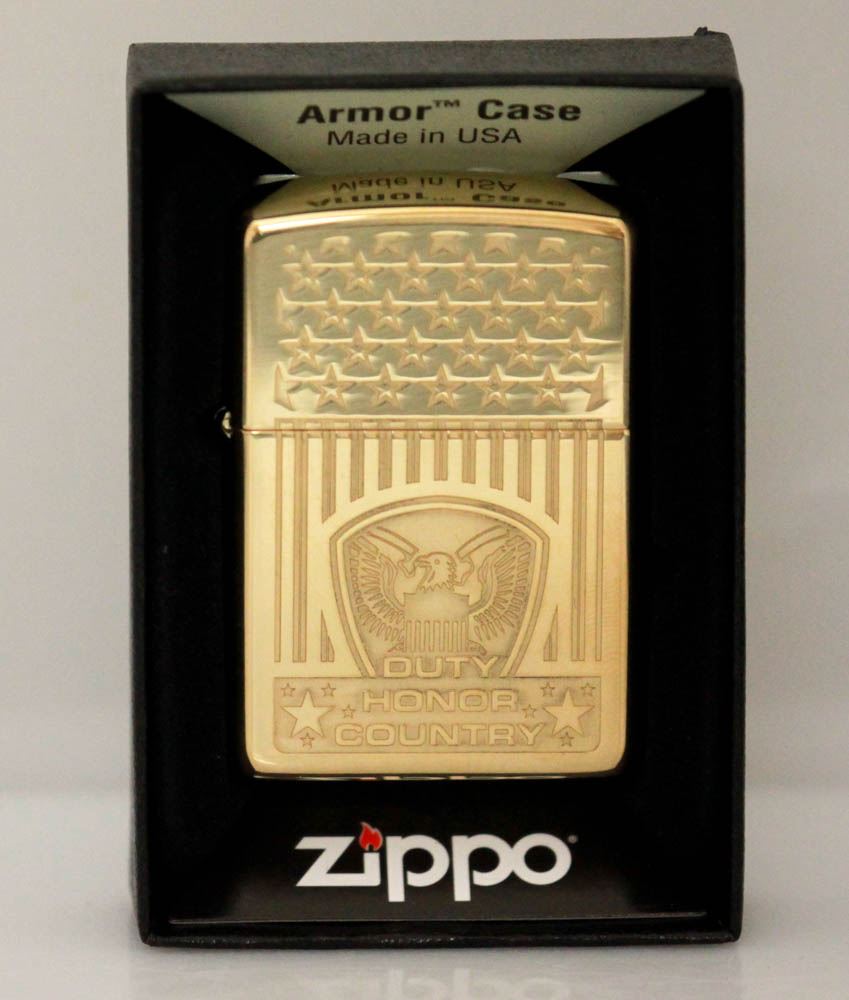 GENUINE ZIPPO "DUTY HONOR COUNTRY" LIGHTER MADE IN U.S. **|**|** GENUINE ARMOR CASE ZIPPO LIGHTER "DUTY HONOR COUNTRY" MADE IN U.S.A AMERICAN PRIDE EDITION This exclusive lighter has a Zippo first, Triple Lustre engraving process bringing you an engraving in exquisite detail at a level of compexity never been seen before.