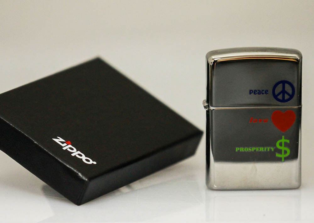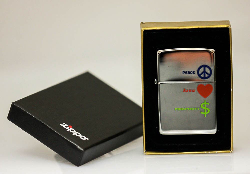 GENUINE ZIPPO LIGHTER PEACE LOVE PROSPERITY MADE IN U.S **|**|** GENUINE ZIPPO LIGHTER PEACE LOVE PROSPERITY MADE IN U.S.A