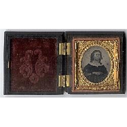 Ambrotype of a lady. Case has small chips at two of the back corner tips.