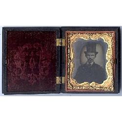 Tintype of gentleman with tall hat. Case seems flawless.
