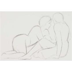 Zwei Mädchen. Lithographie 1930 H.-Pr. L 1930/2. - Expl. “N 4/40”. <U>Signiert</U> und datiert. Auf chamoisfarbenem Vélin. Größe: 33,2 x 49 cm. Ränder mit wenigen Knickspuren.