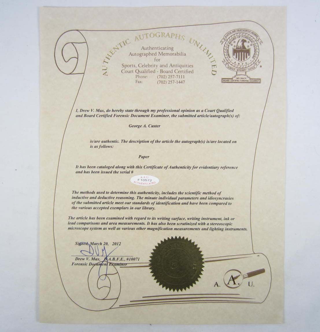 COA is from Authentic Autographs Unlimited.