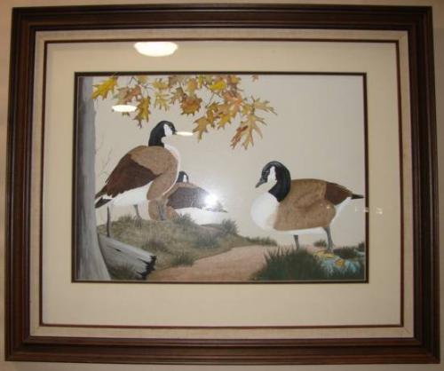 GEORGE BARBER WATERCOLOR PAINTING OF GEESE. Depicts three Canada Geese. Signed at bottom "Geo. Barber". 35.5" x 29.5" framed