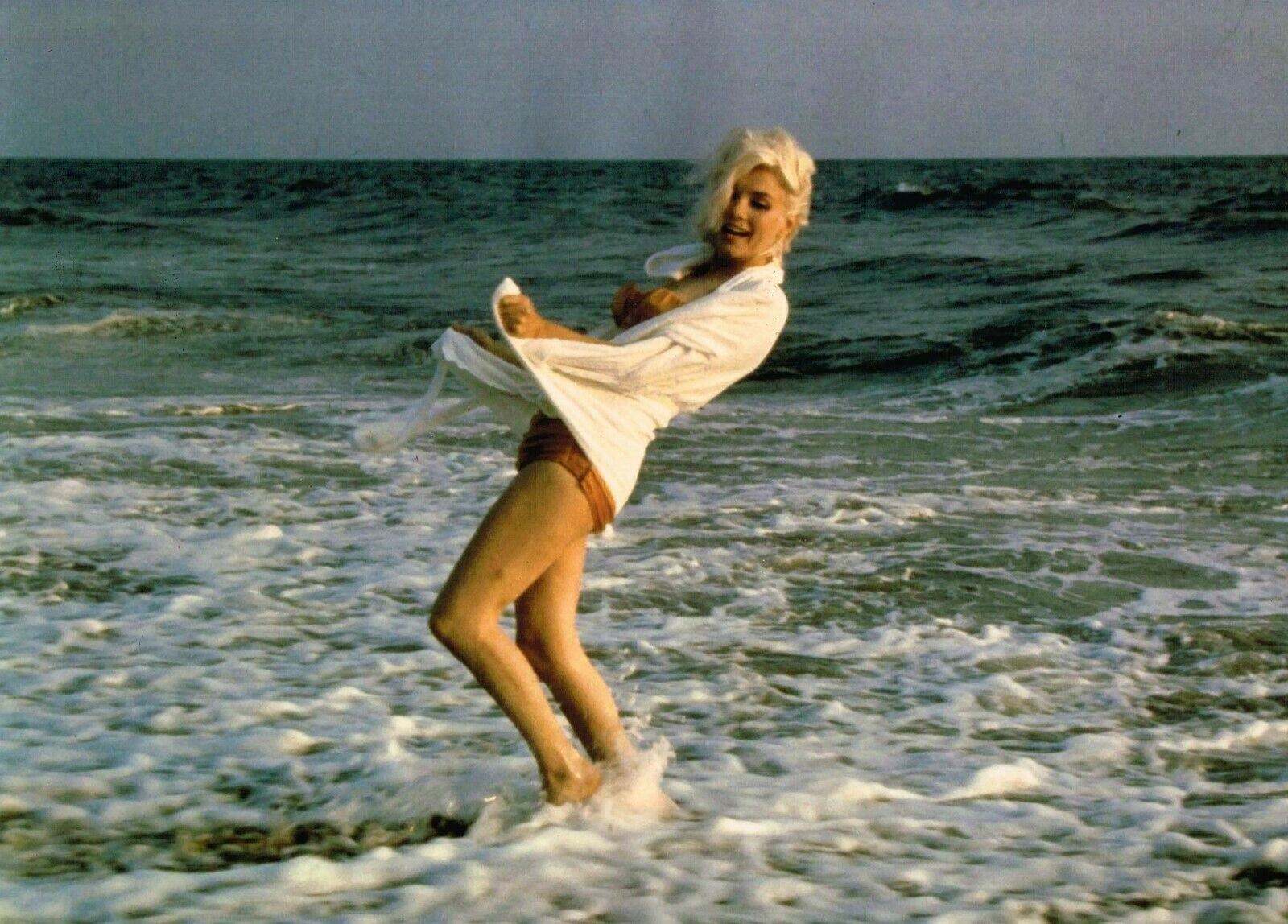 Marilyn Monroe's last photo shoot.Taken on Santa Monica beach, 13th July 1962. C Print. Printed later. 16x12 inches. Stamped by George Barris (c) 1986. Framed. Monroe telephoned him two days before her death, he told The Los Angeles Daily News in 2012. “She called me on Friday, and I was in New York, and she wanted to know if I could come to see her that weekend and that it was urgent,” he recalled. But he had plans to see his family that weekend, so he begged off and promised to visit her on Monday instead.