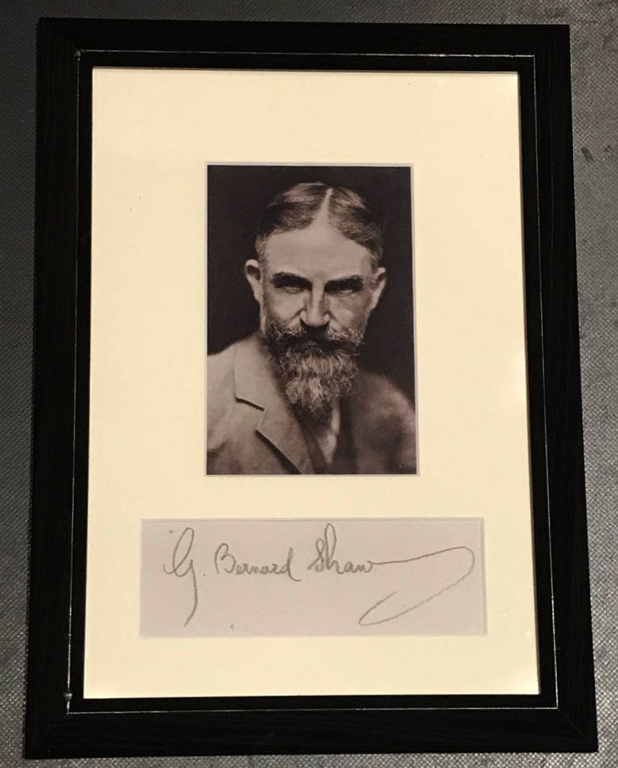 George Bernard Shaw, known at his insistence simply as Bernard Shaw, was an Irish playwright, critic, polemicist and political activist. His influence on Western theatre, culture and politics extended from the 1880s to his death and beyond. Autograph mounted and framed and supplied with coa.