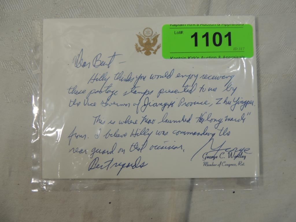 POSTCARD, HAND WRITTEN NOTE, MEMBER OF CONGRESS, CREST POST CARD, POLITICAL MEMORABILIA AS SHOWN SEE PHOTO FOR MORE DETAILS.