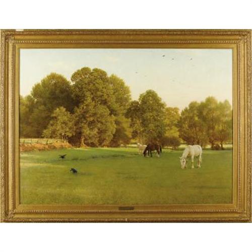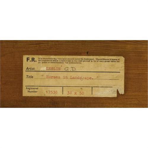 <B>GEORGE DUNLOP LESLIE</B></I> (British 1835-1921)<BR><I>Day of Rest, Wallingford</B></I>, 1897<BR>Oil on canvas stretched over board<BR>38 x 52-3/4 inches (96.5 x 134.0 cm)<BR>Signed lower right: <I>G.D. Leslie 97</B></I><BR> <BR>Provenance:<BR>Kurt E. Schon, Ltd., New Orleans, Louisiana, March 2, 1988<B>Condition Report:</B> Normal wear commensurate with age, cleaned and with some minor scattered strengthening<BR><BR><b>Shipping:</b> Requires 3rd Party Shipping (<a target="_blank" href="http://www.heritageauctions.com/common/shipping.php">view shipping information</a>)