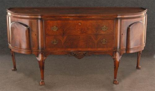 GEORGE II STYLE SIDEBOARD burled walnut, 77"x26"x37" loose leg, early 20th century <BR>condition: excellent aside from loose leg and subtle finish blemishes to top