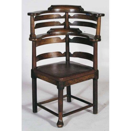 1 GEORGE III CORNER CHAIR late 18th century CONDITION REPORT: top splat broken out, crack in bottom rung.