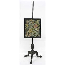 English. 19th Century. The rectangular needlepoint panel adjustable on a circular pole, raised on a tripod base. Height 48 1/4". $200/300