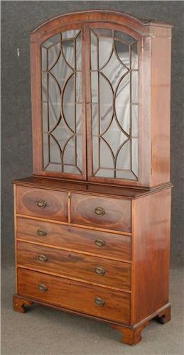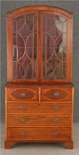 WITH BOOKCASE TOP and butler's <BR> desk within top drawer <BR> late 18th century <BR> condition: base restored, both backs replaced and various small losses in fretwork of bookcase doors, some warping to bookcase doors, a few minor losses <BR> shipping: this lot must be handled by 3rd party shipper. Do not contact us for estimates. We recommend: <BR> The UPS Store, Newtown, CT, store1324@theupsstore.com <BR> Vintage Transport (for furniture), Atlanta GA, info@vintagetransport.com <BR>